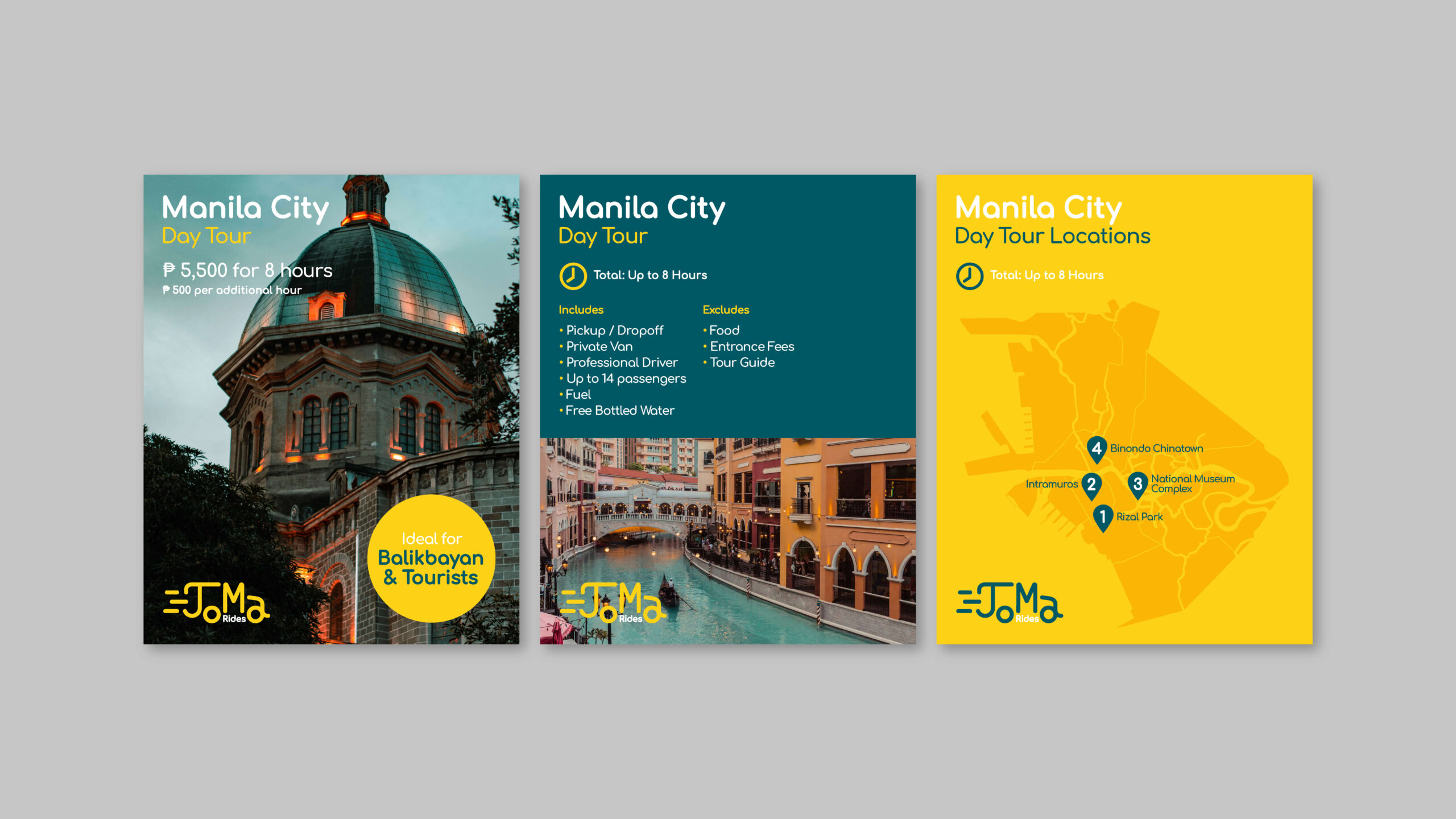 JoMa Rides is a car rental service launching in the Philippines. The aim was to create something bold, fun and approachable for both tourists and locals alike.